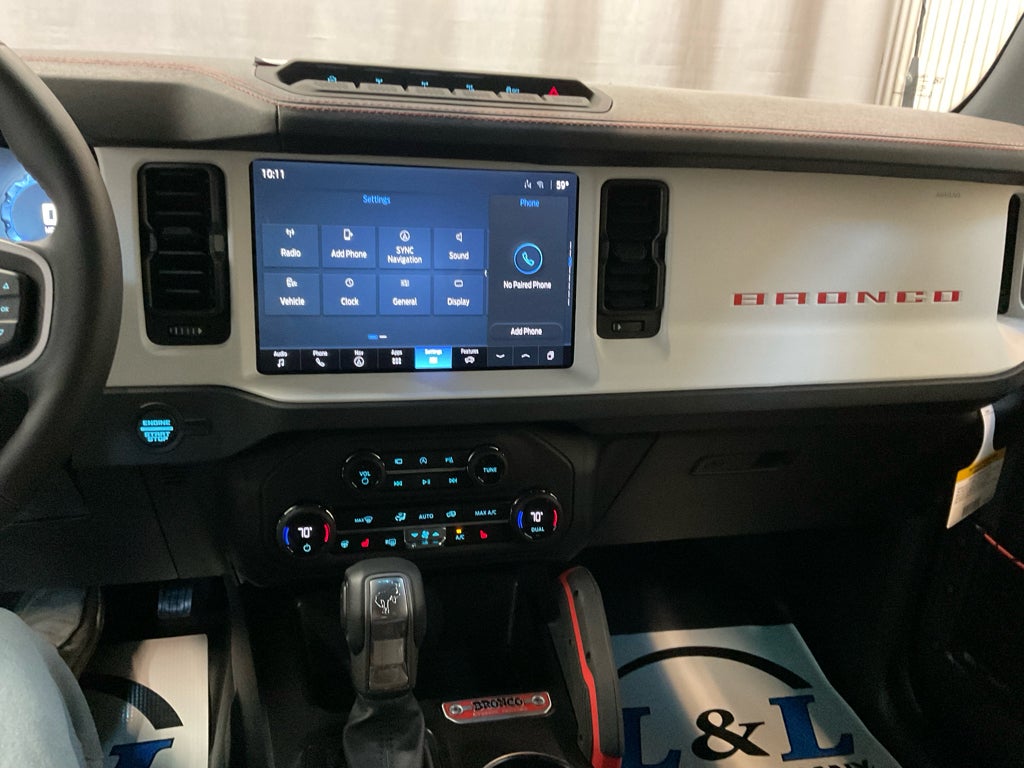 This model has automated speed control that adjusts to maintain a safe following distance, enhancing highway driving convenience. This model offers Apple CarPlay for seamless connectivity. Protect this 2025 Ford Bronco from unwanted accidents with a cutting edge backup camera system. This 2025 Ford Bronco is pure luxury with a heated steering wheel. The installed navigation system will keep you on the right path. This 1/2 ton suv warns of approaching vehicles with Cross-Traffic Alert. Bluetooth® technology is built into the vehicle, keeping your hands on the steering wheel and your focus on the road. Never get into a cold vehicle again with the remote start feature on this model. This unit offers Android Auto for seamless smartphone integration. An off-road package is equipped on it. The Ford Bronco has a V6, 2.7L high output engine. This Ford Bronco has four wheel drive capabilities. Maintaining a stable interior temperature in this model is easy with the climate control system.