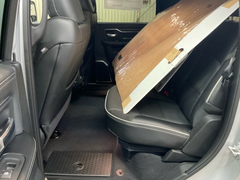 - Laramie Level 1 Plus Equipment Group: Center Stop Lamp with Cargo View Camera; Rain Sensitive Windshield Wipers; Power Adjustable Pedals with Memory; LED Bed Lighting; Traffic Sign Recognition; Auto Power-Folding Mirrors; Adaptive Steering System; Exterior Mirrors with Heating Element; Auto Dim Exterior Mirror; Anti-Spin Differential Rear Axle; Heated Second Row Seats; Drowsy Driver Detection; Mirror Running Lights; MOPAR Deployable Bed Step; Foam Bottle Insert (door Trim Panel); Power-Adjustable Convex Aux Mirrors; Active Lane Management System; Forward and Reverse Utility Lights; Leather Trimmed Bucket Seats; Power Heated Fold Telescopic Mirrors with Memory; Exterior Mirrors with Supplemental Signals; Exterior Mirrors Courtesy Lamps; MOPAR Spray in Bedliner; Remote Tailgate Release; Auto High Beam Headlamp Control; Chrome Exterior Mirrors; Exterior Mirrors with Memory; Power Adjust Mirrors; 2nd Row in Floor Storage Bins; Power Telescoping Mirrors; Auto Dim Exterior Passenger Mirror; Auto Adjust in Reverse Exterior Mirrors